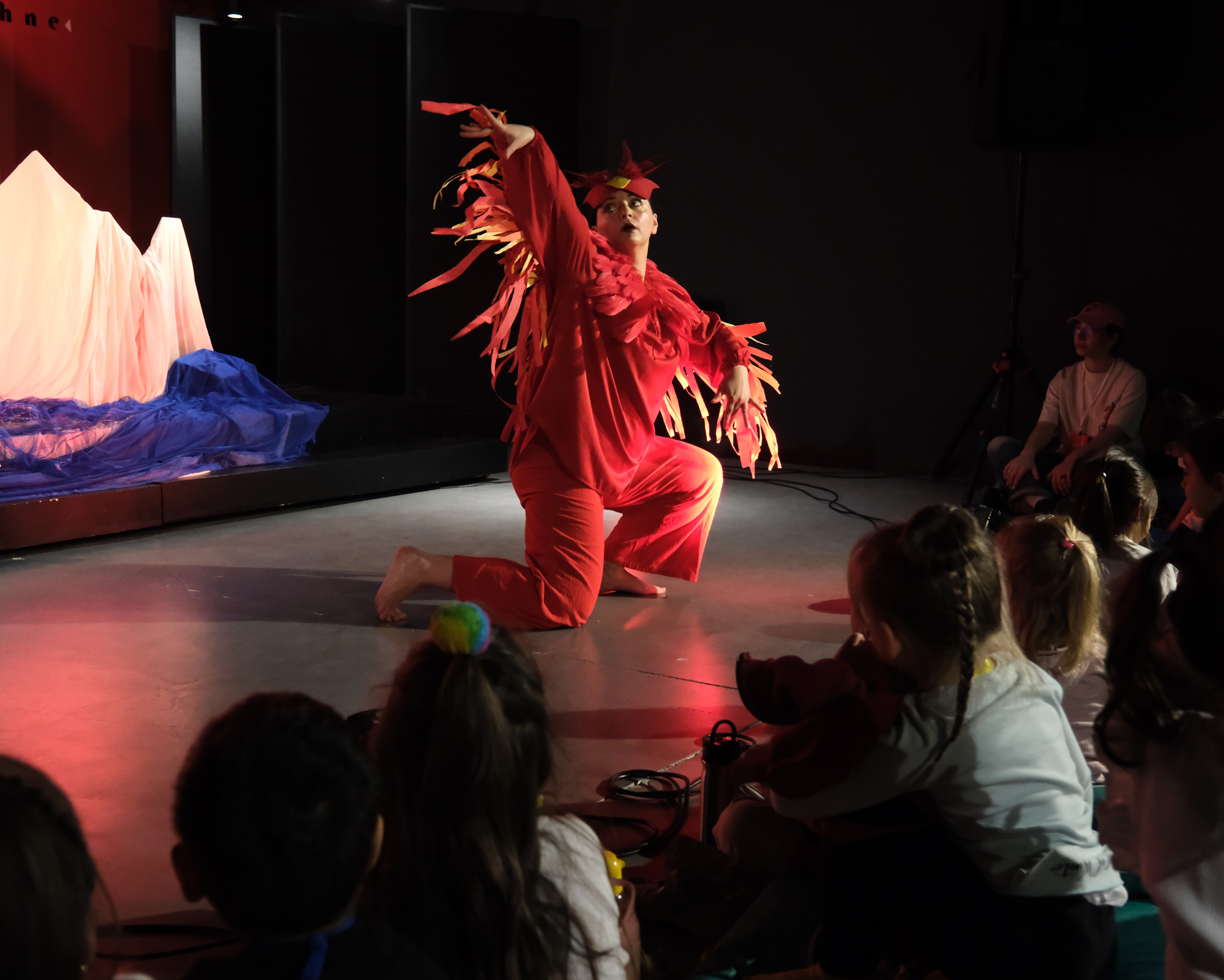 Festivalin 3. günündeki ilk oyunda Norveç’ten katılan Anima Kültür Arena’nın ‘Kırmızı-Mavi-Sarı’ oyunu Dr. Hüseyin Parkan Sanlıkol Müzik Enstrümanları Müzesi’nde sahne aldı. 0-7 yaş grubunun katıldığı etkileşimli ve duygusal müzikli oyunda çocuklar gündüzden geceye büyülü yolculuğa çıktı. Anka kuşunun ormanda gün doğumunda uçmayı öğrendiği, gece prensesinin gökyüzünü yıldızlarla aydınlattığı ve ayın da saklambaç oynadığı, renk ve ışığın büyüleyici gösterileri eşliğinde sahnelenen oyunu izleyen çocuklar, doyasıya eğlendi. Çocuklar oyun sonrasında ise Anima Kültür Arena topluluğunun katılımı ile gerçekleşen ‘Gece Prensesi ile kendi yıldızını yap’ temalı atölyede eğlenceli anlar yaşadı. Mirsaeed Panah’ın arka planda canlı santoor müziğinin büyüleyici atmosferi altında çocuklar sanat ve el becerilerini geliştirdiler.