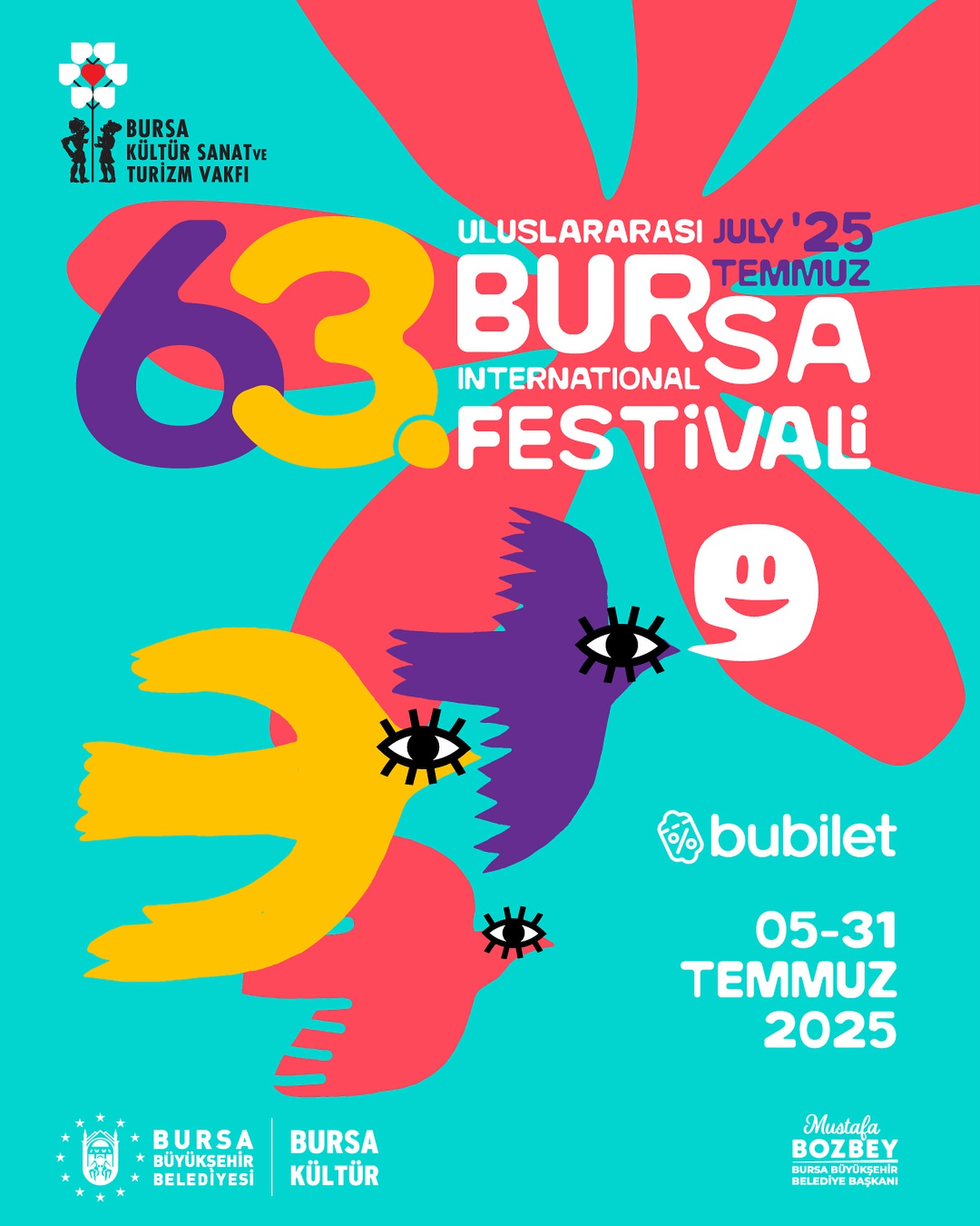 Bu yılki festivalin, 5-31 Temmuz tarihleri arasında 35’i konser olmak üzere toplam 145 gösteriyle sanatseverlerle buluşacağını anlatan Başkan Bozbey, Bursalı sanatçıların yanı sıra Türkiye ve dünyadan önemli isimlerin yer aldığı festival programına 40 bin kişinin biletli, 75 bin kişinin de ücretsiz olarak katılımını beklediklerini dile getirdi. Festivalin bu yıl, Açık Hava Tiyatrosu’nun yanı sıra ‘müze konserleri’ konseptiyle de Bursa’ya yayılacağını anlatan Başkan Bozbey, Arkeopark’tan Zindankapı’ya, Panorama 1326’dan Müzik Enstrümanları Müzesi’ne ve İznik Antik Roma Tiyatrosu’na kadar uzanan özel mekânlarda sanatseverlerle bulaşacağını söyledi. Bu yıl 63’üncü yaşı kutlanan Uluslararası Bursa Festivali’nin temellerinin 1962 yılında atıldığını belirten Başkan Bozbey, “Festival programımıza, Fakir Baykurt’un aynı adlı romanından uyarlanan ve Metin Erksan imzalı ödüllü film ‘Yılanların Öcü’nü de özel bir gösterimle dahil ettik. Festivalde, Fettah Can, Nida Ateş ve Mehmet Ali Sanlıkol gibi Bursalı sanatçılarımız da yer alıyor. Müzik Enstrümanları Müzesi’ni Bursa’ya kazandıran Parkan Sanlıkol’u rahmetle anıyorum. Bursa sanat ve sanatçı açısından çok zengin bir kent. Hedefimiz, Bursa sanat dünyasını Bursalıların tanımasını sağlamaktır. 1962 yılında büyük bir coşkuyla başlayan festival, 1987 yılında halk danslarını ‘Uluslararası Altın Karagöz Halk Dansları Yarışması’ ile taçlandırarak uluslararası bir boyuta taşıdı. O günden bugüne bu güzel gelenek, kesintisiz şekilde sürüyor. Bu yıl da 17 ilçemizde 17 farklı ülkeden ve Bursamızdan gelen halk dansları topluluklarıyla rengârenk bir kültür şöleni yaşayacağız. Ayrıca 15 ilçemizde, bu gösterilere konserler de eşlik edecek. Sanatın, müziğin, dansın ve kültürel çeşitliliğin birleştirici gücünü hep birlikte Bursamızın her köşesine taşıyacağız” dedi.